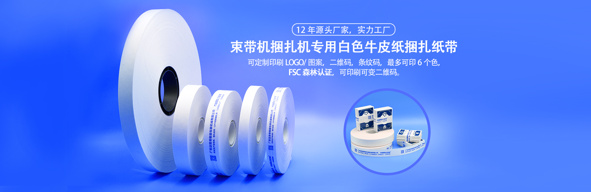 束带机捆扎热熔纸带(白色牛皮纸材质)主要用于钞票、彩盒、吊牌、单据、卡纸、书籍、报刊、小文具、制药、食品、印刷品、服装、旅游产品、金融产品、IT、日用化工产品等对较大较多的产品进行整体···